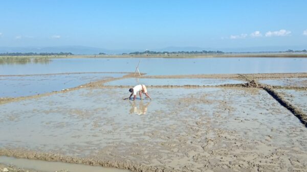 ধর্মপাশা-মধ্যনগরের কৃষকেরা বীজতলা তৈরিতে ব্যস্ত