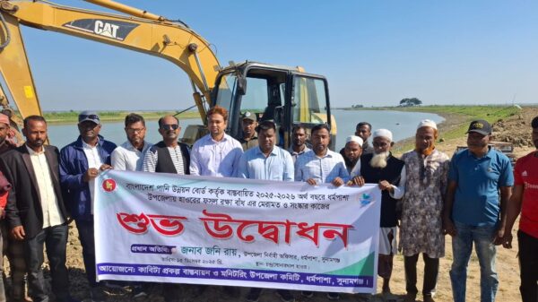ধর্মপাশা-মধ্যনগরে ফসলরক্ষা বাঁধের কাজ শুরু